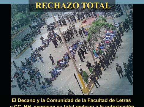 El Decano y la Comunidad de la Facultad de Letras y CC. HH. de la UNMSM expresaron “su total rechazo a la autorización de la intervención policial violenta, en la cual se dispararon bombas lacrimógenas, habrían participado ‘ternas’ y no se habría asegurado la presencia de la Fiscalía” durante la intervención de la PNP en la San Marcos.