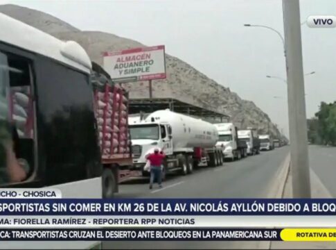 Continúa el bloqueo en la Carretera Central, a la altura de Lurigancho-Chosica, en el kilómetro 26 de la avenida Nicolas Ayllón.
