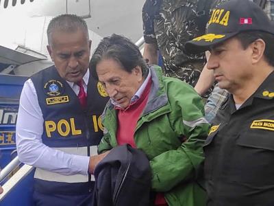 Toledo llegó a Perú en un vuelo comercial procedente de Los Ángeles, custodiado por alguaciles de ese país, que entregaron al exmandatario a la Policía y Fiscalía de Perú en la DIPA, un ambiente aledaño al aeropuerto internacional Jorge Chávez.