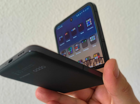 Pero en las llamadas hay otro detalle que, esta vez, es propio del plegable de OPPO gracias a su pantalla exterior de 3,26 pulgadas. Es la más grande en su categoría y no está para sustituir a la interior cuando está cerrado, sino para dar una serie de funciones muy relacionadas con su formato. Con el teléfono cerrado y unos auriculares bluetooth, podemos ver quien nos llama, coger y terminar las llamadas. Puede parecer una tontería, pero si estás trabajando es tremendamente útil y, además, ahorra tiempo de la pantalla principal (y por ende, de la batería).