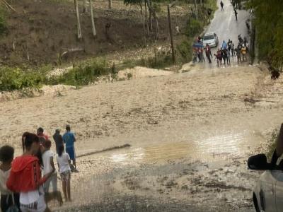 El  paso fue interrumpido en el distrito municipal Boca de Cachón, Jimaní, y la carretera La Descubierta-Jimaní, Boca de Cachón. “Allí el puente sobre Arroyo Penitente está en proceso de iniciar su construcción y se está en espera que bajen las aguas para evaluar daños”, indica Obras Públicas.