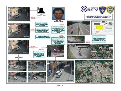 Con las cámaras de vigilancia, sobre todo las del Sistema Nacional de Emergencia 911, ubicadas en la autopista 6 de Noviembre, se pudo observar que, a las 12:32 de la tarde del 20 de julio, Juan José Sánchez se dirigió en la motocicleta hacia esta autopista llevando un saco y dos minutos más tarde buscó un lugar donde dejar el cuerpo.
