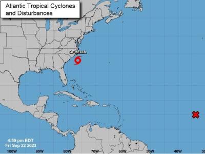 El Centro Nacional de Huracanes (NHC, en inglés) estadounidense indicó en su boletín de las 17:00 hora local de hoy (21:00 GMT) que el centro de Ophelia se encuentra a 120 millas (195 km) al sureste de Cabo Fear y a 165 millas (265 km) al sur de Cabo Hatteras, ambos en Carolina del Norte.