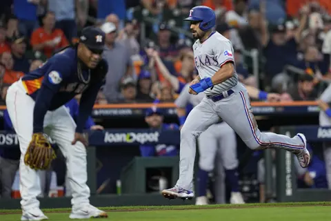 Jonah Heim bateó cuadrangular, Nathan Eovaldi lanzó seis entradas efectivas y los Texas Rangers superaron al dominicano Framber Valdez y los Houston Astros por 5-4 el lunes, para tomar ventaja de 2-0 en la Serie de Campeonato de la Liga Americana.