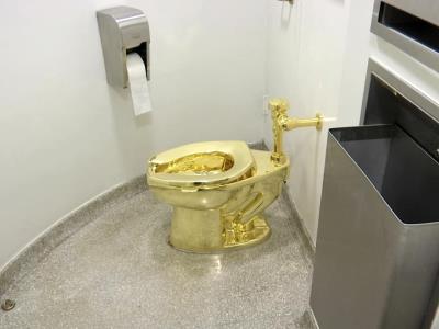 El artefacto es una obra de arte llamada “América”, del artista italiano Maurizio Cattelan, ideada como sátira a la riqueza excesiva y valuada en 4,8 millones de libras (5,95 millones de dólares). Era parte de una exhibición en el Palacio de Blenheim, cerca de Oxford, cuando fue robada una noche de septiembre de 2019.