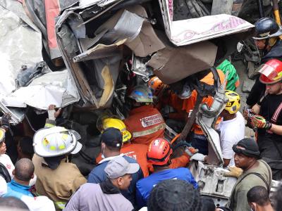 Sara Reyes, entrevistada antes del mediodía, dijo que cuatro de sus familiares estaban atrapados, entre ellos su madre, Rosmery Carvajal, de 46 años, y un sobrino de seis meses de nacido. La madre y el niño están vivos, mientras su hermana y su cuñado están muertos, afirmó Reyes, quien aseguró habló por teléfono con su progenitora mientras esta estaba dentro del autobús con una pierna rota, pero que pudo usar la mano derecha porque su brazo izquiero estaba debajo de una persona fallecida.