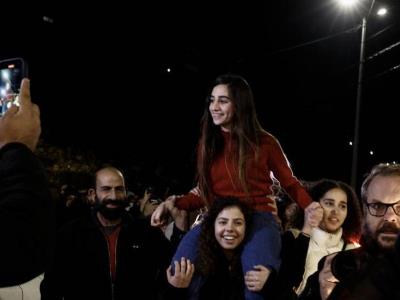 «¡Bienvenida, bienvenida!», corea la multitud que porta a hombros a esta figura del movimiento estudiantil en Cisjordania, territorio palestino ocupado desde hace 56 años por Israel.