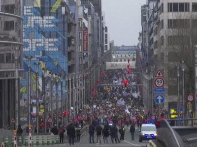 Miles de personas marcharon el domingo por el centro de Bruselas en una bulliciosa protesta contra el calentamiento climático, mientras concluía la conferencia COP28 en los Emiratos Árabes Unidos.