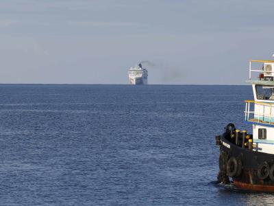 La embarcación comenzó a divisarse en el horizonte alrededor de las 8:15 de la mañana de este jueves, aproximándose con lentitud mientras espera la señal de la lancha de remolque, que le indicará cuándo debe atracar a puerto.