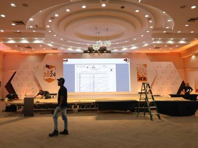El centro de divulgación de resultados que se realizará en el hotel Dominican Fiesta está siendo montado actualmente y contará con pantallas que distribuirán a los candidatos por región y municipios.