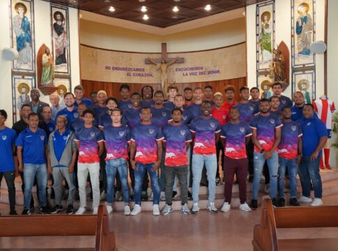 SANTO DOMINGO. Con una misa oficiada por el padre Eulogio Castaños en la parroquia San Judas Tadeo se inició el acto de lanzamiento de los Delfines del Este FC, equipo que el próximo viernes sostendrá contra los campeones Cibao FC el partido inaugural de la temporada 2024 de la Liga Dominicana de Fútbol.