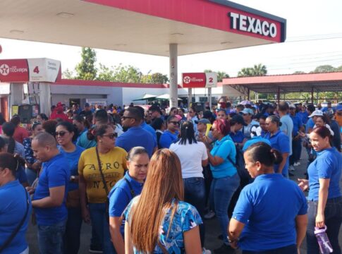 Cientos de maestros se concentraron este miércoles en la Bomba de Cenoví, desde donde marcharon por la avenida Presidente Antonio Guzman Fernandez, vociferando consignas y portando pancartas.