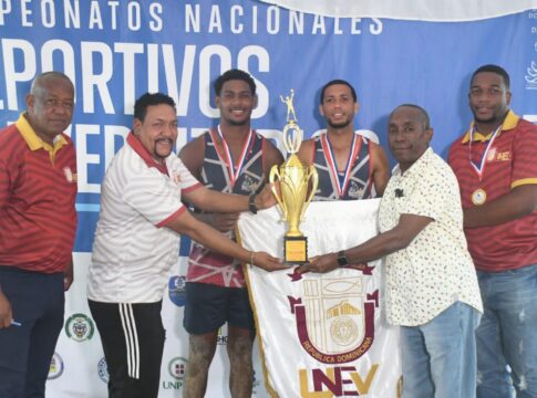SANTO DOMINGO. Las parejas de la Universidad Nacional Evangélica (Unev) en masculino y la Universidad del Caribe, (Unicaribe), en femenino, levantaron las copas de campeón del torneo de voleibol de playa en la versión 2024 de los Juegos Universitarios.
