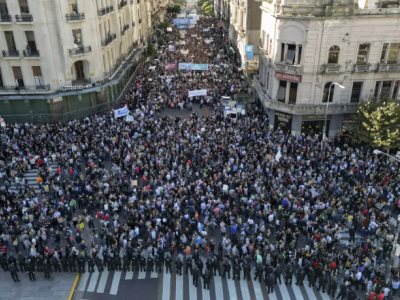 “Si la universidad está vacía, ¿de qué llenamos el futuro?”, se leía en un cartel escrito a mano que sostenía un joven en la Plaza de Mayo de Buenos Aires, epicentro de la movilización. “En defensa de la educación pública”, que también tuvo réplicas en todo el país y contó con la adhesión de sindicatos, organizaciones sociales y partidos de la oposición.