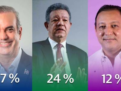 La firma encuestadora Mark Penn/Stawell/Noticias SIN difundió la noche de este lunes la primera entrega de su encuesta de cara a las elecciones presidenciales del 19 de mayo y estableció que el presidente Luis Abinader ganaría con un 57 %, 33 puntos de ventaja sobre el candidato de la Fuerza del Pueblo, Leonel Fernández, que en el estudio sacó 24 % y 45 puntos más que el contrincante del Partido de la Liberación Dominicana (PLD) que figura con un 12 % de simpatía.