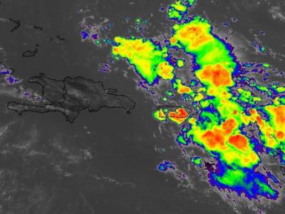 La activa onda tropical que afectará el país desde este jueves se ubica actualmente al este de Puerto Rico. Se espera que este jueves ocurran lluvias desde horas de la madrugada y el transcurso del día en el territorio dominicano.
