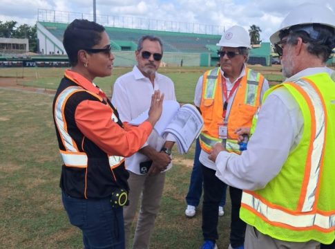 El Comisionado Nacional de Béisbol, Junior Noboa, junto a la arquitecta Penélope Valdez, directora de Proyectos de la Presidencia, ven con buenos ojos los trabajos de remodelación que realiza el Gobierno dominicano en el Estadio Tetelo Vargas, de San Pedro de Macorís.