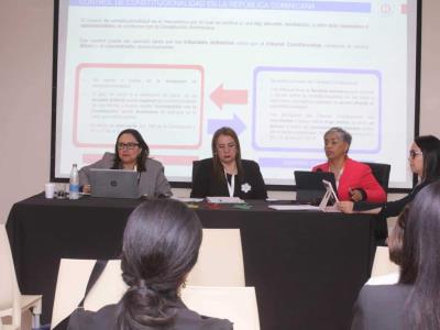 La magistrada María Garabito Ramírez destacó que en República Dominicana el control de convencionalidad se sustenta en el artículo 74 de la Constitución, el que establece que los tratados, pactos y convenciones relativos a derechos humanos, suscritos y ratificados por el Estado dominicano, tienen jerarquía constitucional y prevalecen sobre las leyes internas siempre que contenga normas sobre derechos humanos más favorables.