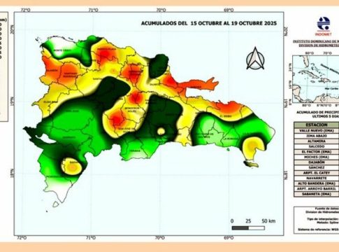 Según el pronóstico, el sistema continuará desplazándose hacia el oeste y se espera que los campos nubosos asociados generen fuertes aguaceros, tormentas eléctricas y ráfagas de viento durante esta semana sobre diferentes provincias del territorio dominicano.
