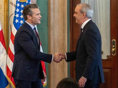 Abinader recibió al secretario de Guerra de Estados Unidos, Pete Hegseth, cuya visita se enmarca en la ampliación de la cooperación bilateral en seguridad regional, comercio y migración. Destacó que la lucha contra el narcotráfico ha sido una prioridad compartida por varios gobiernos locales y que, desde 2020, gracias al trabajo conjunto con EE. UU., el país ha decomisado casi diez veces más drogas por año que en la década precedente.