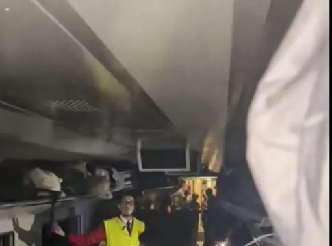Imagen de varios pasajeros en un vagón de uno de los trenes siniestrados en Adamuz (Córdoba). EFE/ Imágenes facilitadas por Adri Vélez en la red social X.