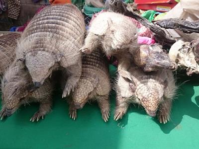 Decomisan 9 armadillos andinos convertidos en matracas en Bolivia
